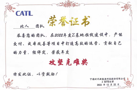 Know MoreWinning Honor On December 22, 2022, Jiangsu Beiren won the annual Overcoming Difficulties Award issued by CATL! Jiangsu Beirens project team created efficient operations in projects such as capacity delivery and cost improvement during the Z