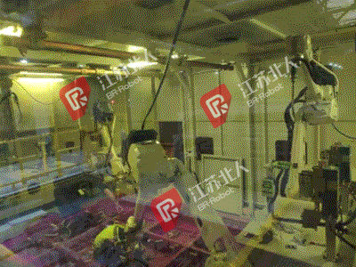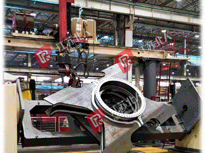 年份:2018年 客户:某集团工程机械客户 产品:履带架 机器人及设备:KUKA机器人+Fronius500A双丝焊、三轴机器人倒挂式龙门架、10T双轴重载变位机; 节拍:2h/件 特点:大电流双丝焊、