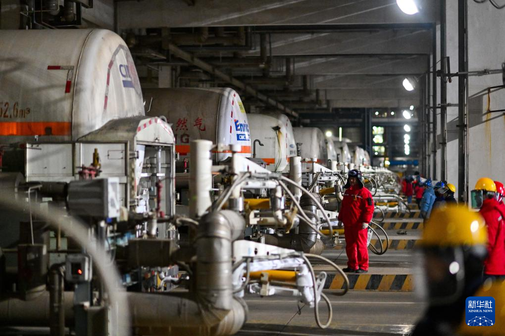 2月6日,槽罐车在中国石化天津LNG接收站液化天然气装载区进行装载作业。