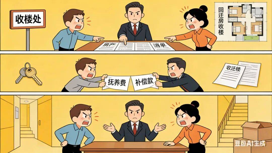 说起来,这事儿的根源早就埋下了。薛某和曾某离婚后,法院一审、二审都明确了,一套200平方米的回迁房权益归两人的女儿所有,双方也同意用两套合计222.97平方米的回迁房来兑现这份权益。可偏偏就卡在了多出来的22.97平方米补偿上:薛某觉得该按市场价算补偿,曾某却想抵扣部分子女抚养费;再加上两人之间还有一笔已经起诉的民间借贷纠纷没了结,房价怎么定、补偿怎么算、债务怎么冲抵,谈了好几次都谈崩了,谁也不肯让步,最后才闹到收楼现场冲突升级的地步。